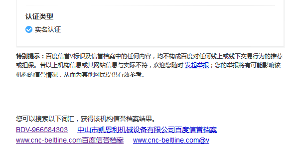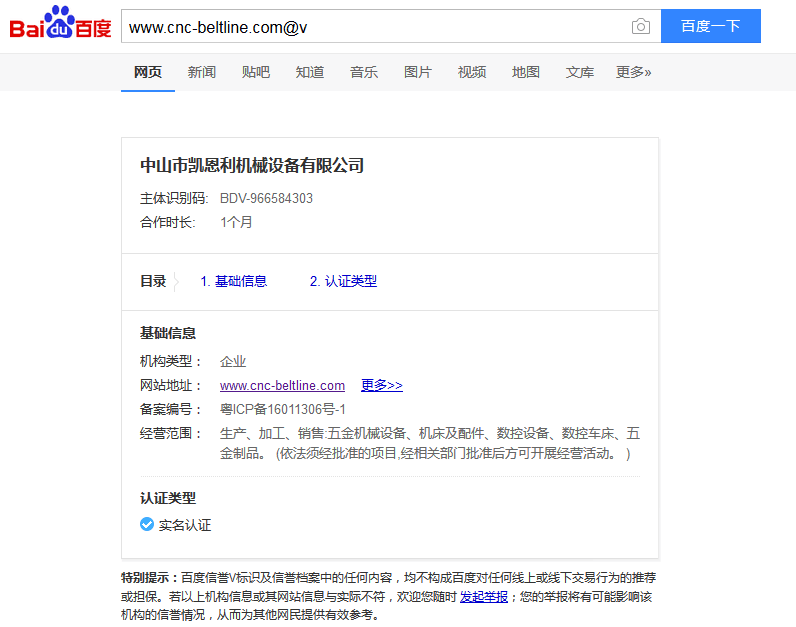 凱恩利機(jī)械廠 百度信譽(yù)檔案V1 認(rèn)證成功上線
